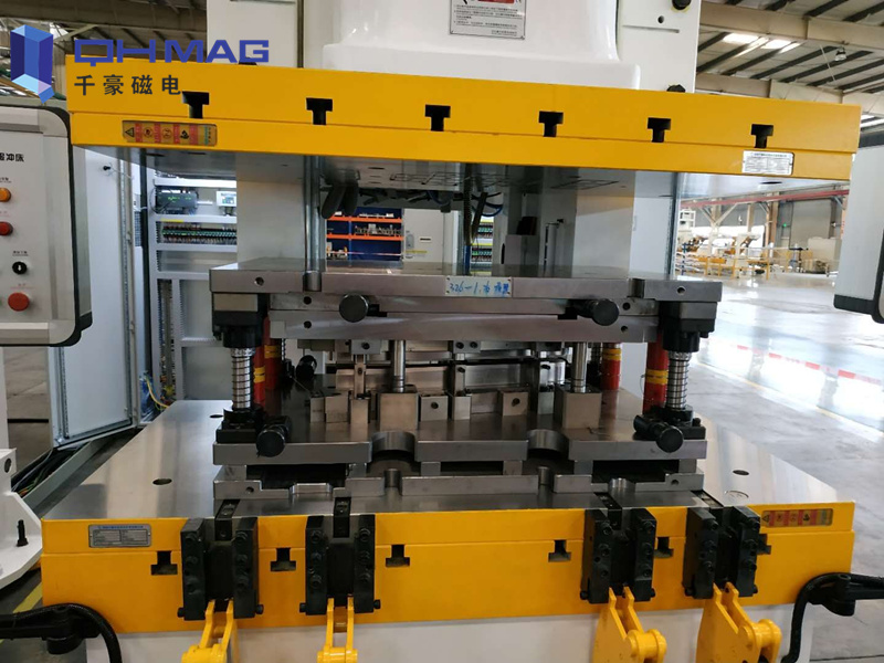 沖床用電永磁快速換模系統(tǒng)適合任何形狀和尺寸的模具,已有的模具無需修改就可以用在配備有HQ系統(tǒng)的沖床上,不需要制定特殊的模具標準,節(jié)省設計和制作時間,降低成本,同時可以在磁盤上增加各種您所需要的設備:定位裝置、沉孔、下模延伸板等都可以定制添加。對于裝備有長條形模架的模具,磁盤上的磁極可設計為相應的長條形,從而提供最佳的效果。下模可增加T型槽,適用于絕大多數(shù)的模具升降滑軌。