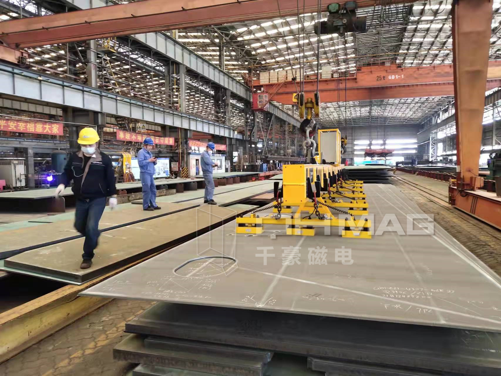 本次設(shè)計的電永磁吊具——吊鋼板,主要用于廣船國際造船用的鋼板搬運起吊,千豪設(shè)計團隊了解到現(xiàn)場需要起吊厚鋼板,薄鋼板,長度以及重量都不一,最長10米,最重達(dá)到40噸。