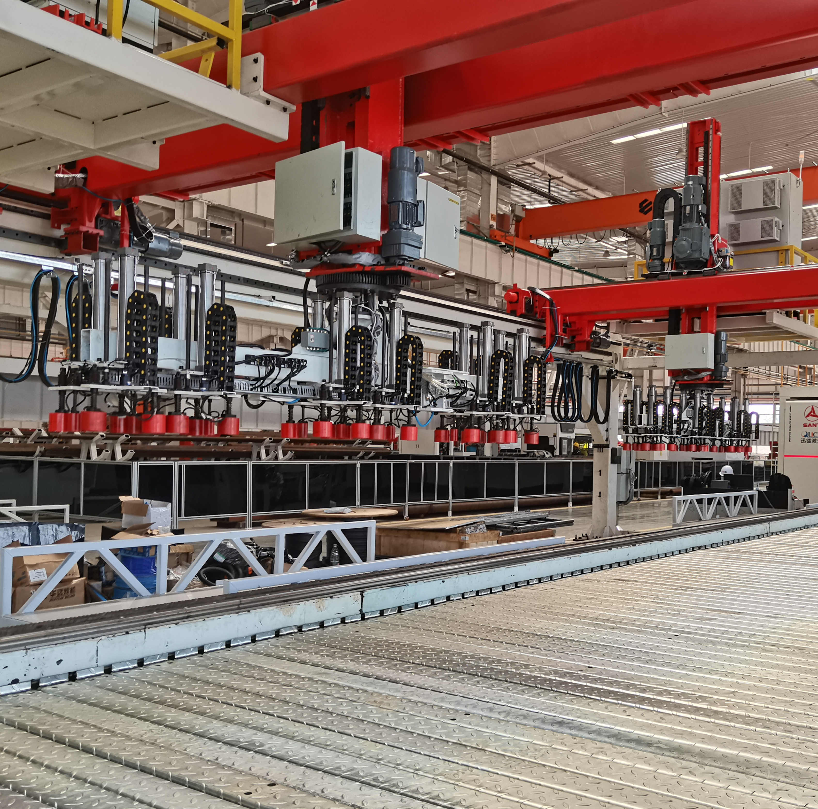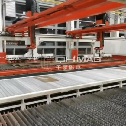 工業(yè)桁架機(jī)器人的應(yīng)用使工人在規(guī)?;a(chǎn)過程中擺脫了單調(diào)重復(fù)的體力勞動(dòng),改善了工作環(huán)境,同時(shí)提高了產(chǎn)品質(zhì)量,因此成為了企業(yè)自動(dòng)化改造的必然選擇。桁架式工業(yè)機(jī)器人以其高可靠性、高速度、大負(fù)載、大行程、低成本等特點(diǎn),在物料搬運(yùn)傳輸領(lǐng)域有著獨(dú)特的優(yōu)勢,應(yīng)用前景十分廣闊。傳統(tǒng)鋼結(jié)構(gòu)車間采用激光切割機(jī)切割鋼板,鋼板以人工分揀為主,工人勞動(dòng)強(qiáng)度大,生產(chǎn)效率低,工作環(huán)境惡劣。因此千豪為鋼板自動(dòng)化分揀機(jī)器人安裝電永磁鐵,用于代替人工實(shí)現(xiàn)鋼板的自動(dòng)分揀