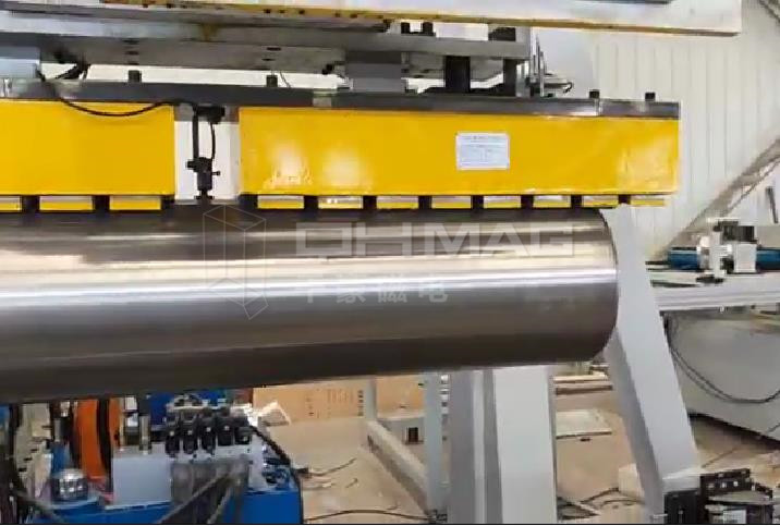 此次哈工大選用的千豪磁電的V型電永磁布局,可牢固吸住鋼管進(jìn)行搬運(yùn),翻轉(zhuǎn)。工作過程不需要用電。