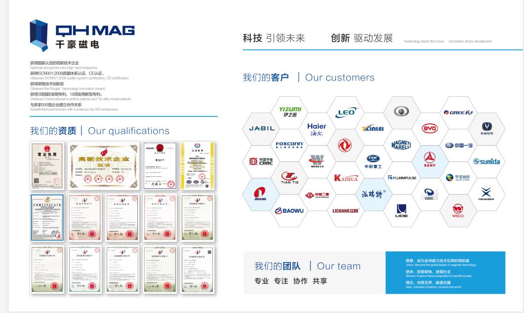 在電磁鐵轉(zhuǎn)型電永磁鐵上,千豪磁電吸取了許多老一輩電磁鐵人的經(jīng)驗與指導(dǎo),第一臺電永磁鐵的誕生離不開千千萬萬電磁鐵人的付出,也離不開那些堅持不懈的研發(fā)技術(shù)團隊。